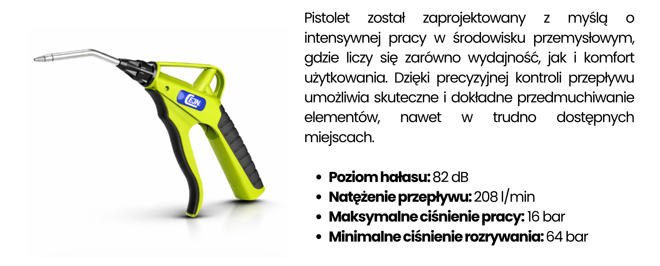 Pistolet CEJN Hi-Vis 209 przystosowany jest do pracy zarówno ze sprężonym powietrzem, jak i cieczami, co znacząco rozszerza zakres jego zastosowań w codziennej pracy.