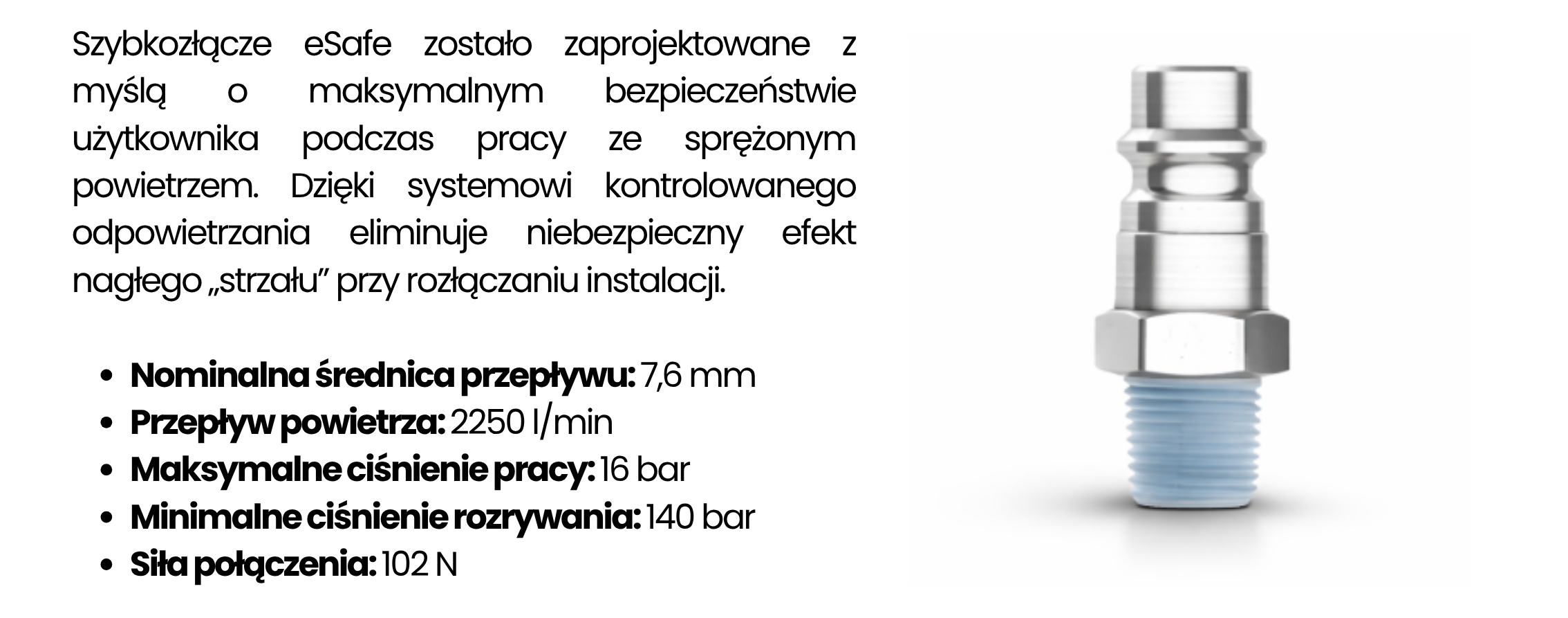 Szybkozłącze eSafe pozwala ograniczyć ryzyko urazów oraz poprawia ogólny poziom bezpieczeństwa na stanowisku pracy.
