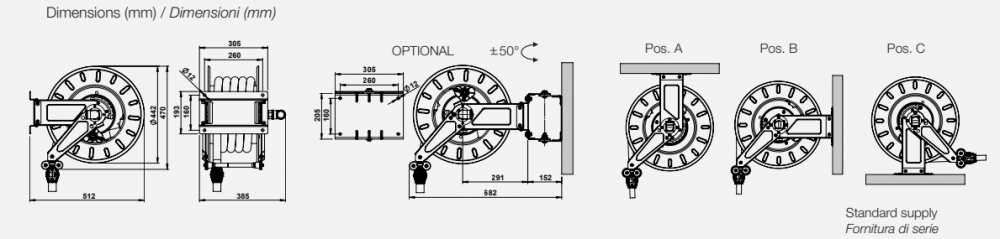 Hose reel with blue thermoplastic hose 19x28 (3/4") length 20m - Inlet 1"M - Outlet 3/4"M