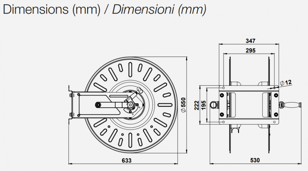 Hose reel without hose. Capacity: 3/4" - Inlet G 1" F - Outlet o19 mm