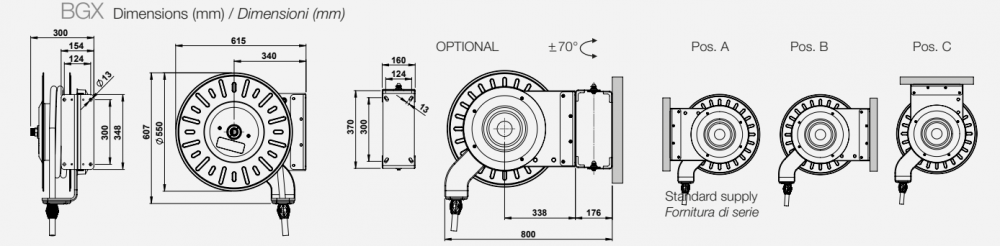 Hose reel without hose. Capacity: 30 m (20 OD), 25 m (24 OD) - In. 1" M - Out. 3/4" F