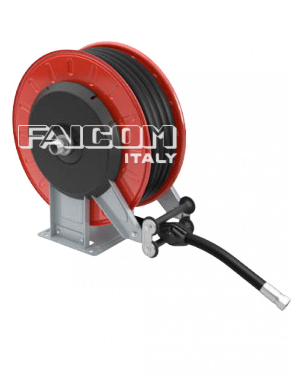 ATEX hose reel without hose. Capacity: 25 m 3/8" 2SC-400 bar hose - In. 3/8" F - Out. 3/8" M - stainless steel shaft and swivel