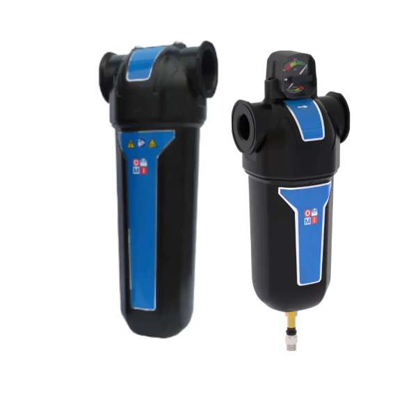 Filtr OMI AF2700 PF to precyzyjne rozwiązanie do oczyszczania sprężonego powietrza z drobnych zanieczyszczeń stałych oraz cząstek oleju w zastosowaniach przemysłowych o dużym zapotrzebowaniu na powietrze. Dzięki zaawansowanej konstrukcji i zastosowaniu mechanizmu koalescencji, filtr PF skutecznie wychwytuje cząstki do 0,01 mikrona oraz ogranicza zawartość oleju w sprężonym powietrzu do poziomu 0,01 mg/m³. Jego działanie opiera się na połączeniu sił oddziaływań fizycznych, które powodują zderzenia mikroskopijnych cząstek cieczy i ich kondensację w większe krople, odprowadzane grawitacyjnie na dno obudowy.