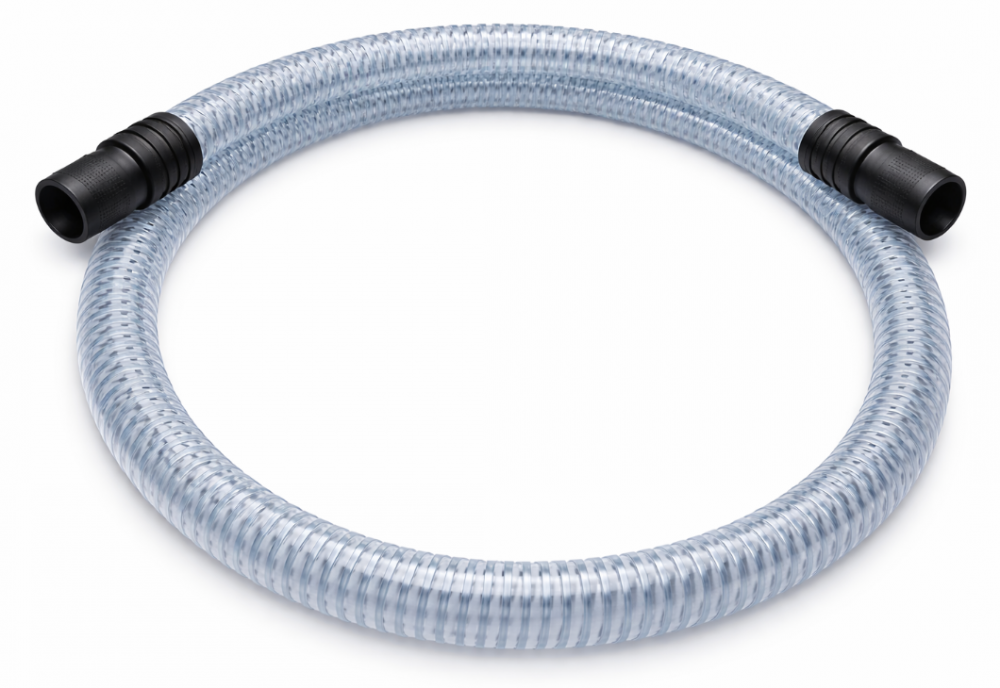 WĄŻ POLIURETANOWY ZE SPIRALĄ ZE STALI NIERDZEWNEJ, Wąż elastyczny do zasysania plynów i materiałów ściernych, 10 m, średnica 70 mm. Mufy w zestawie.