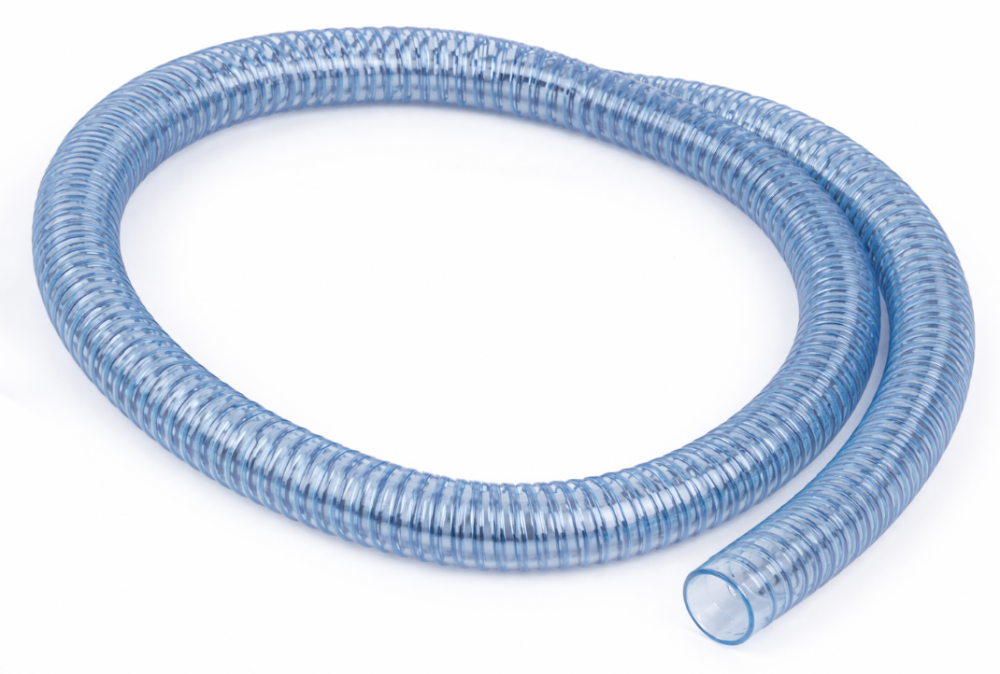 Wąż poliuretanowy ze spiralą miedzianą - wzmocniony, do zasysania cieczy i materiałów ściernych, dł. 20 m, wlot/wylot - 100 mm. Bez muf. Cena za mb.
