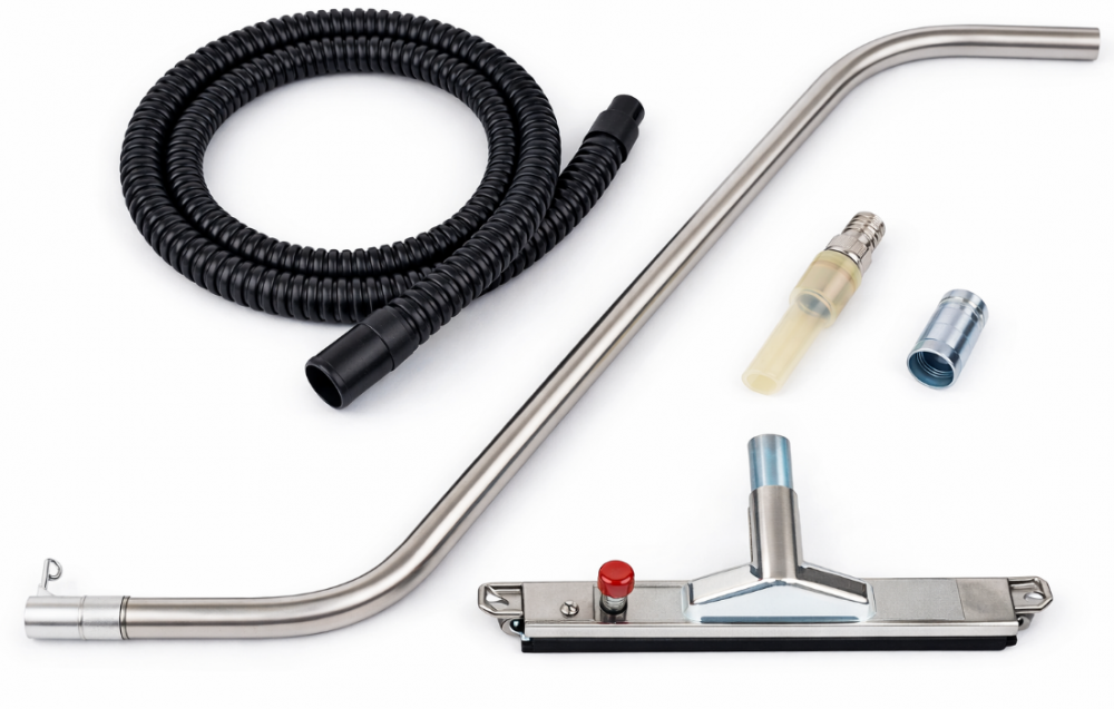 Zest.akces. śr.40 SS do przem. spożyw. i farmac. M220S: ant mufa, ant mufa 50/40, przył. proste ant, wąż 3m ant., dysza stożkowa + przył.nierdz, rura gięta nierdz, szczotka nierdz. na kółkach