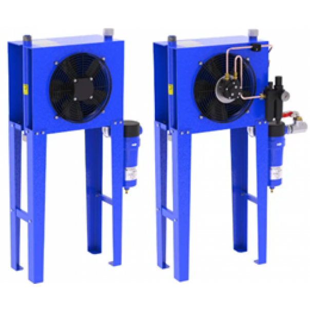 Szerokie rozmiary wymiennika ciepła i mocne formy elektryczne pozwalają na obniżenie temperatury sprężonego powietrza od 120°C do temperatury wylotowej o 9°C wyższej od temperatury otoczenia. Spadki ciśnienia są redukowane do minimum, a powstały kondensat jest odprowadzany przez separator skraplacza zamontowany na wylocie wymiennika ciepła.