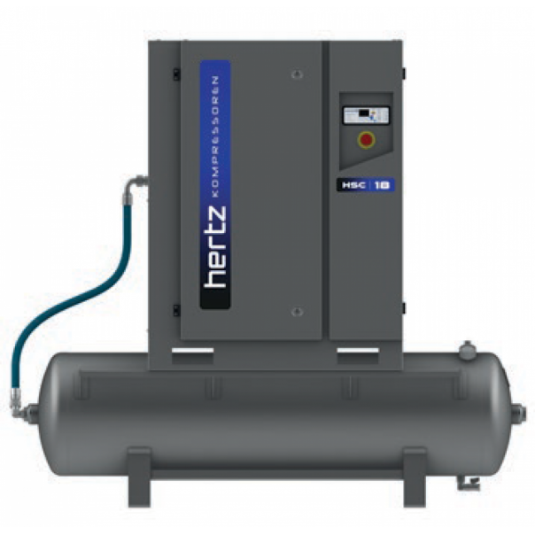 Sprężarka śrubowa Hertz HSC 22+Z, stałoobrotowa, napęd pasowy, moc: 22 kW, ciśnienie: 7,5 / 8,5 / 10 / 13 bar; zbiornik 2x270 l