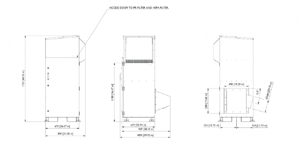 Jednostka wyposażona jest w filtr wstępny klasy F9 oraz filtr HEPA H14, zapewniające wysoką skuteczność filtracji. Filtr wstępny wychwytuje ponad 95% cząstek o wielkości 0,4 µm, natomiast filtr główny zatrzymuje ponad 99,995% cząstek o wielkości 0,3 µm. Zastosowany system filtracji zapewnia długą żywotność wkładów oraz niskie wymagania konserwacyjne.