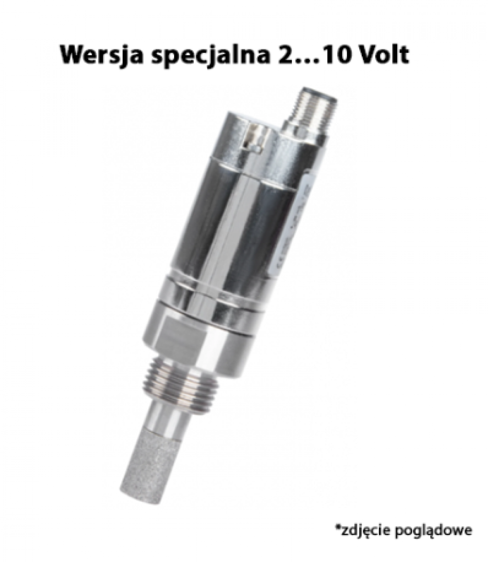 Wersja z wyjściem 2…10 V pozwala na bezpośrednią integrację z systemami sterowania wykorzystywanymi w automatyce przemysłowej oraz instalacjach HVAC. Sygnał napięciowy może być wykorzystywany do monitorowania parametrów procesu, sterowania pracą osuszaczy lub do archiwizacji danych w systemach nadrzędnych.