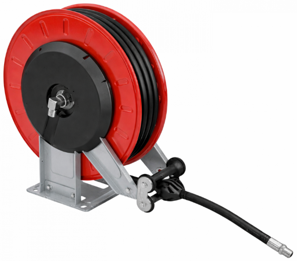 ATEX certyfikowane automatyczne zwijadło węża z wężem o średnicy 3/8" typu 2SN/2SC i długości 15 m, przeznaczone do pracy z smarem przy ciśnieniu do 400 bar, w strefach zagrożonych wybuchem. Solidna konstrukcja oraz niezawodny mechanizm sprężynowy zapewniają komfort i bezpieczeństwo użytkowania.