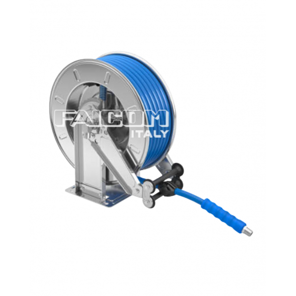 Zwijadło automatyczne Faicom serii "VLX" ze stali nierdzewnej z wężem 3/8" 2SC Hydro Blue dł. 20 m - wlot 3/8" żeński - wylot 3/8" męski; medium: woda < 150°C; ciśnienie: 400 bar